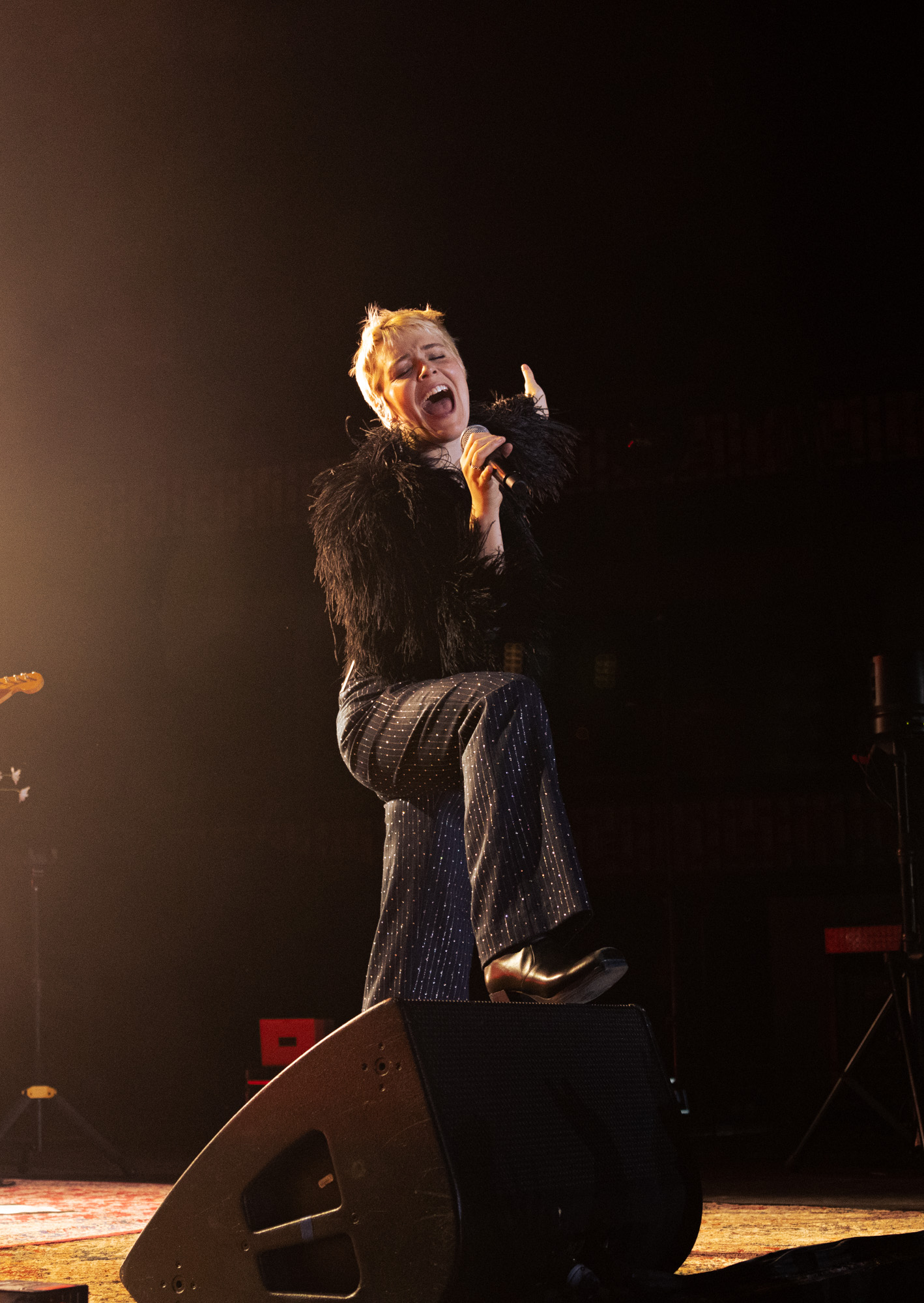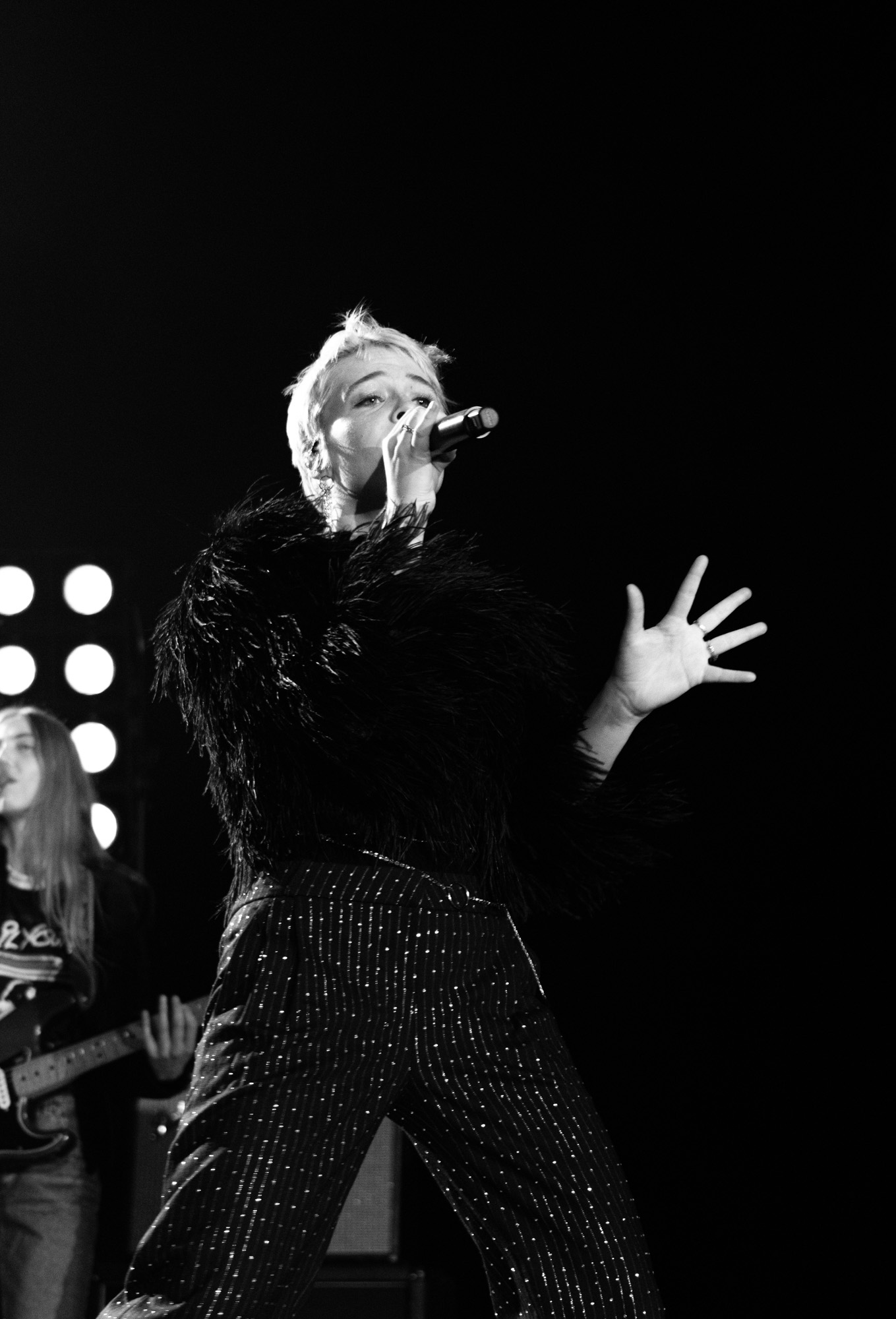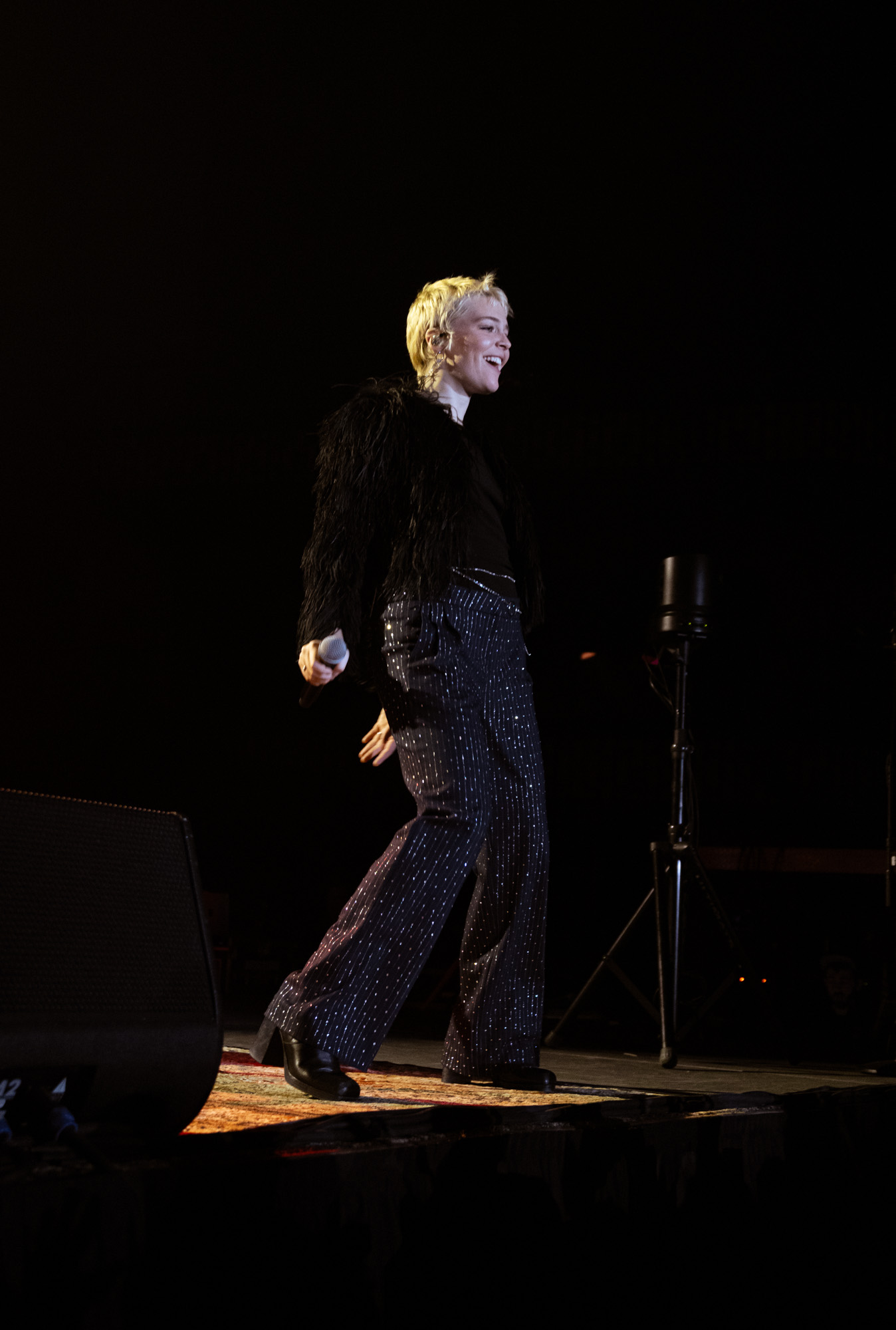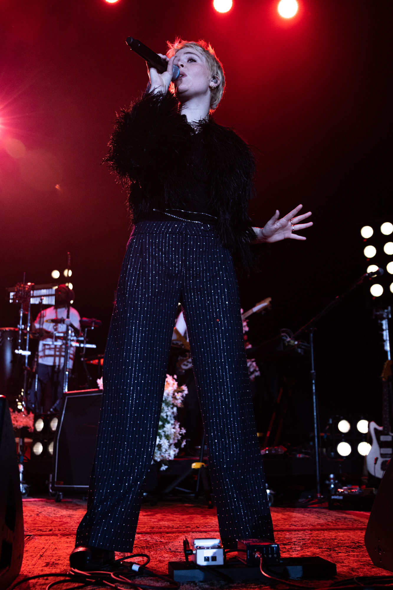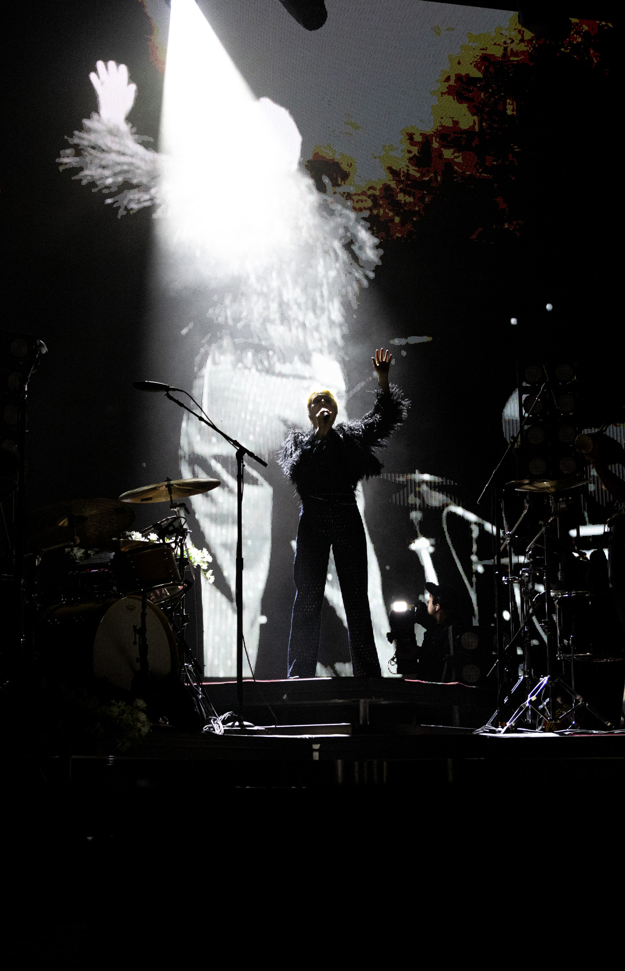 The Feral Joy tour puts a spotlight on Rogers’ latest album “Surrender” with additional support from her previous albums, “Heard It In A Past Life” and “Notes From The Archive.” Rogers began her set with the song “Overdrive” surrounded by flashing lights and with a full band behind her. She wowed the audience with her prowess and infectious energy. As she twirled across the stage, Rogers made sure all eyes were on her as her sparkly pants mirrored the flashing lights around her. She also caught the audience’s attention by frequently projecting live video feed mixed with pre-recorded material above the stage.