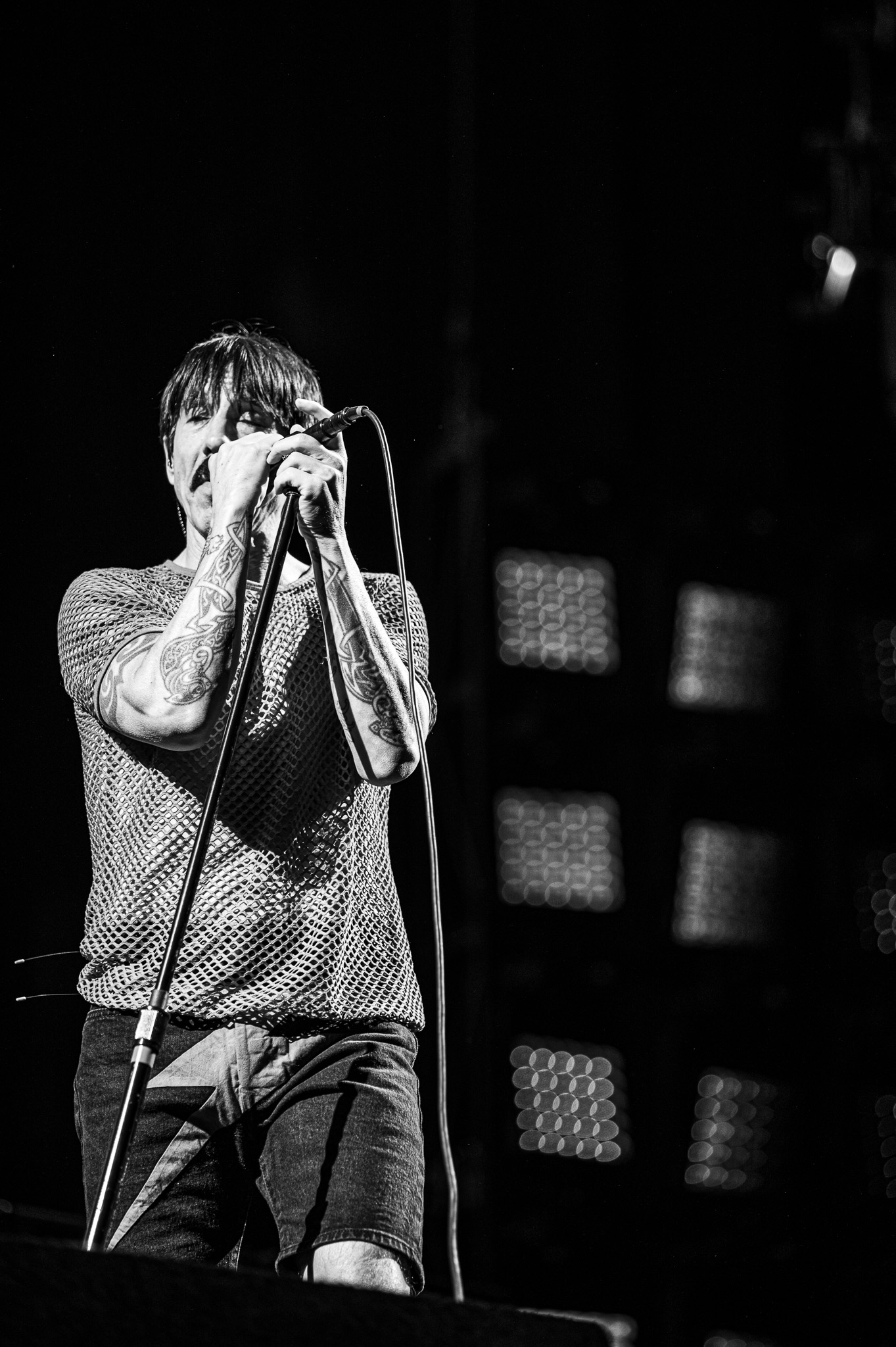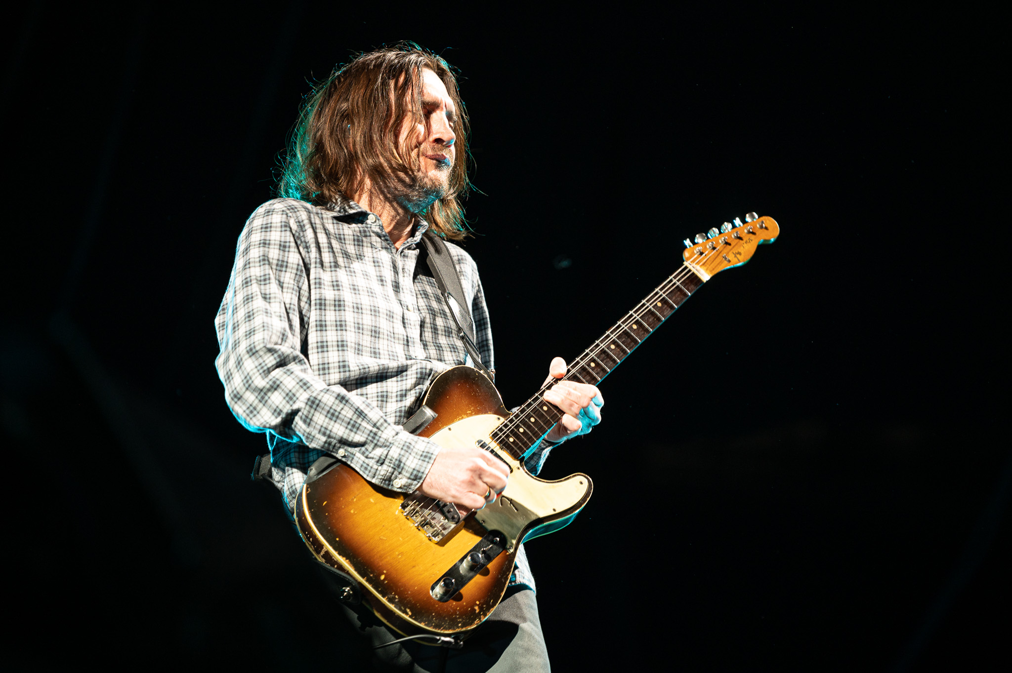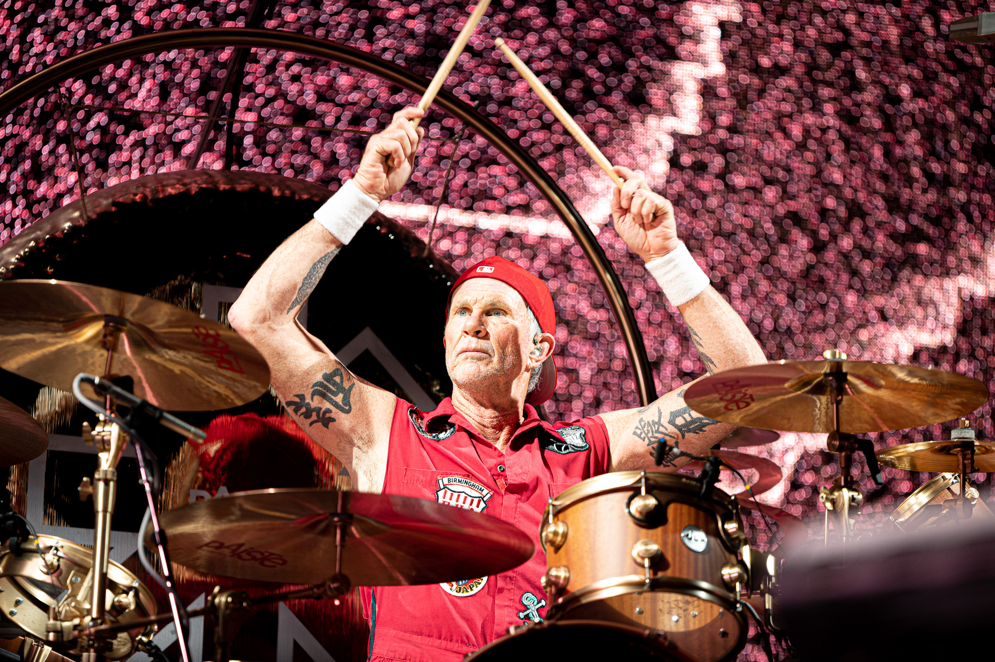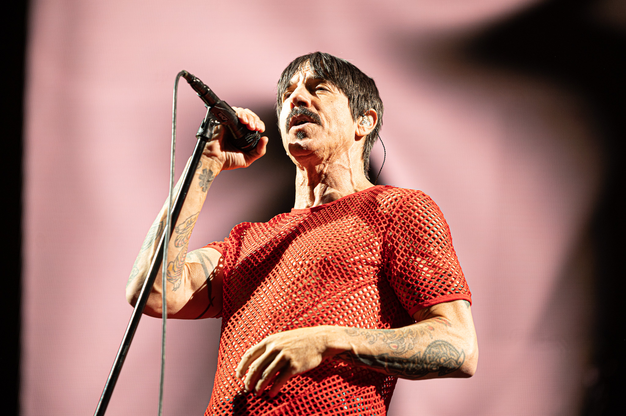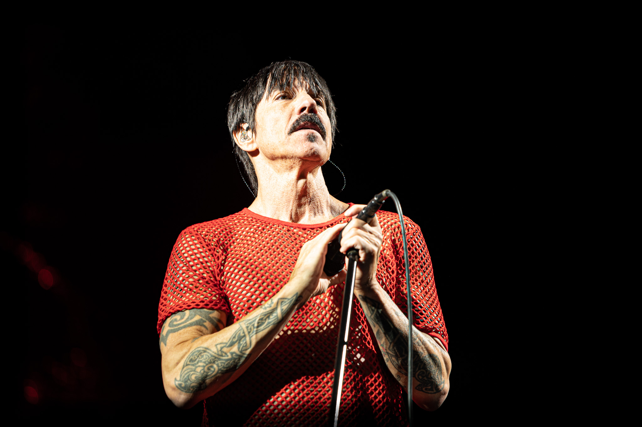 The Red Hot Chili Peppers have been bringing in fans from all backgrounds since their creation in 1982. For a band full of musicians that now find themselves in their late 50’s and early 60’s, they brought the same amount of fierce energy that has always been part of their image. The show started with an orchestral swell and an instrumental song with bassist Flea, drummer Chad Smith, and guitarist John Frusciante. The seemingly improvised jam session highlighted the immense musical talent among the three band members. After about five minutes of playing from some of the world’s greatest musicians, lead singer Anthony Kiedis ran on stage in a bright red fishnet top and black shorts. The singer also seemed to have a medical boot on one leg and a compression style brace on the other. I can only assume that after decades of jumping and moving around as much as the band did on Saturday night, that it takes an immense toll on their bodies. Kiedis and the rest of the band proved that they can still keep up with the rapid fire lyrics and beats that they are known for.