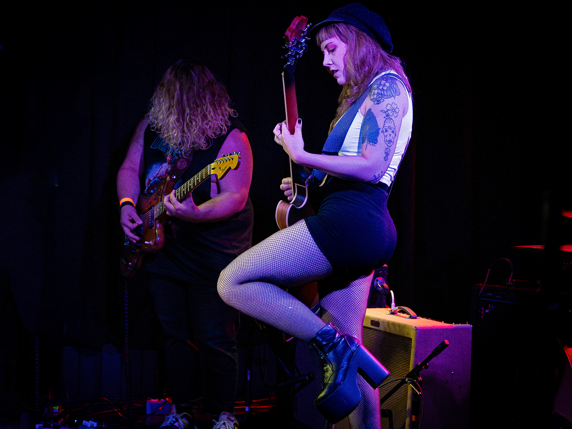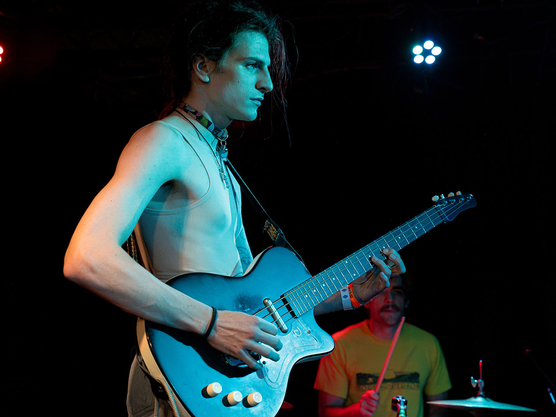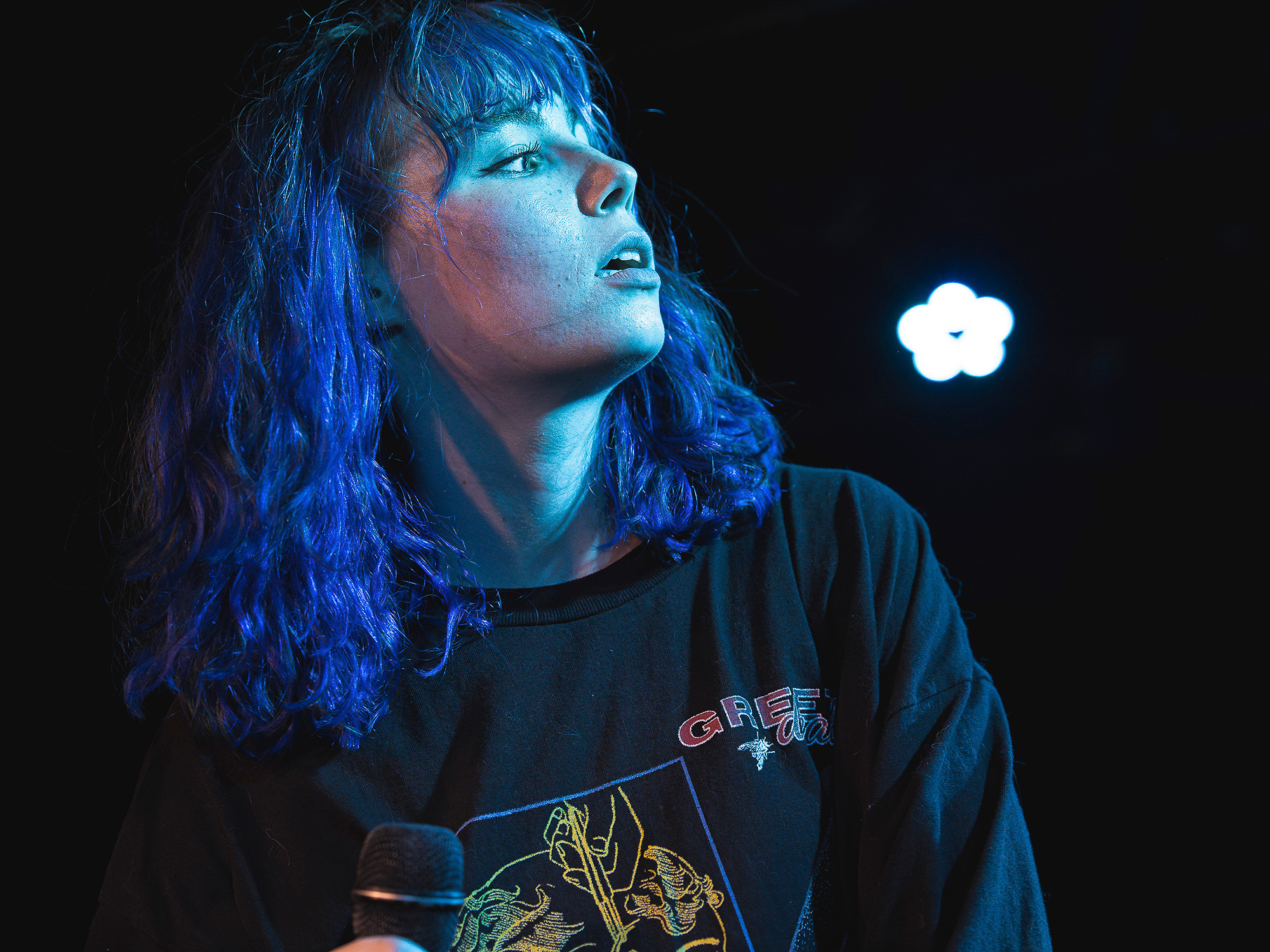 Anita Velveeta played many released tracks including, “finger puppet,” “milk,” and “I saw the devil in Portland, Oregon,” the latter of which featured intense red lighting and vigorous riffs. Anita’s unique and spunky voice fits her music perfectly as each track is special in its own way. There are clear influences from a wide range of genres in this artist’s songs, which made it all the more interesting to listen to.