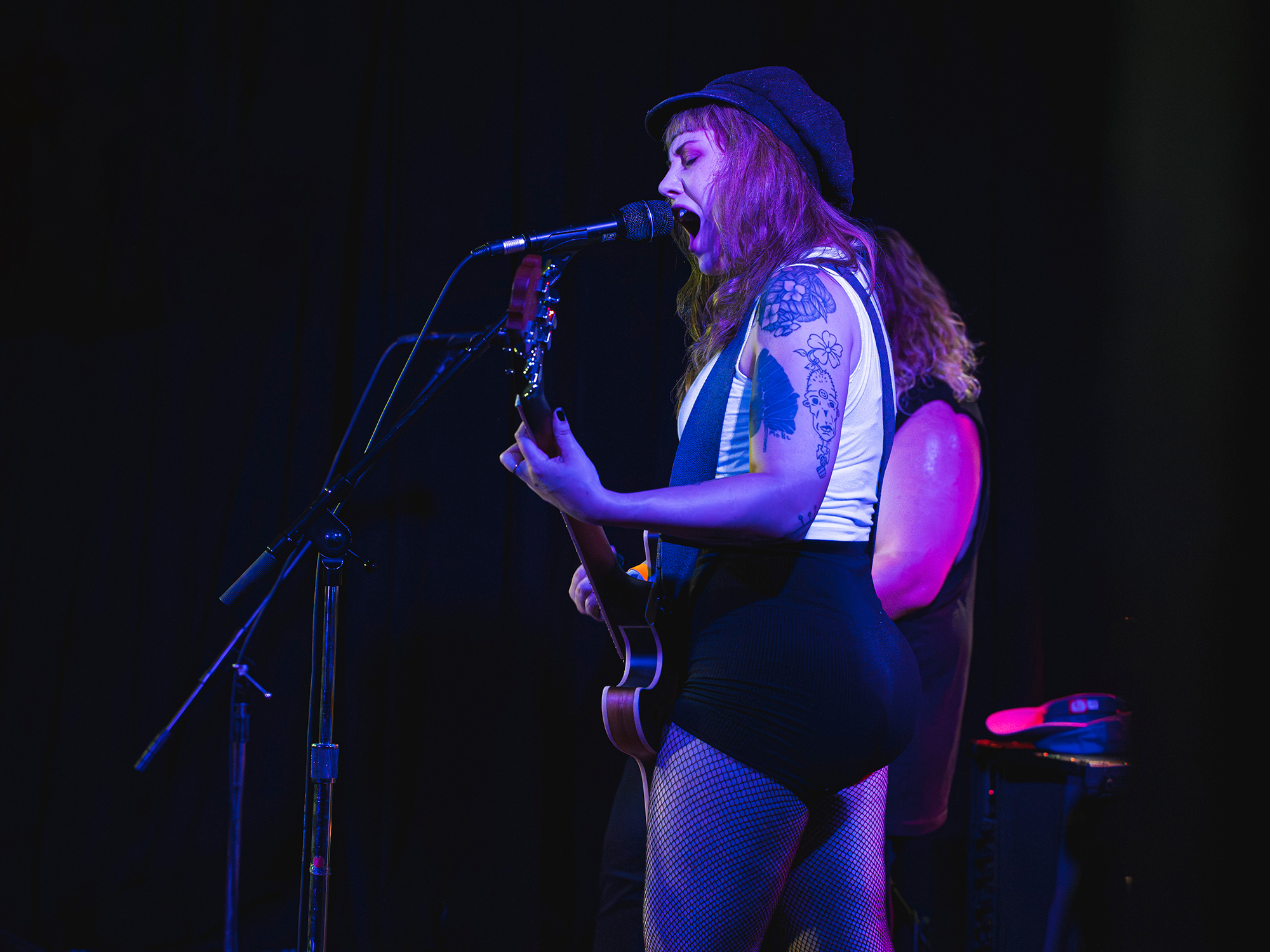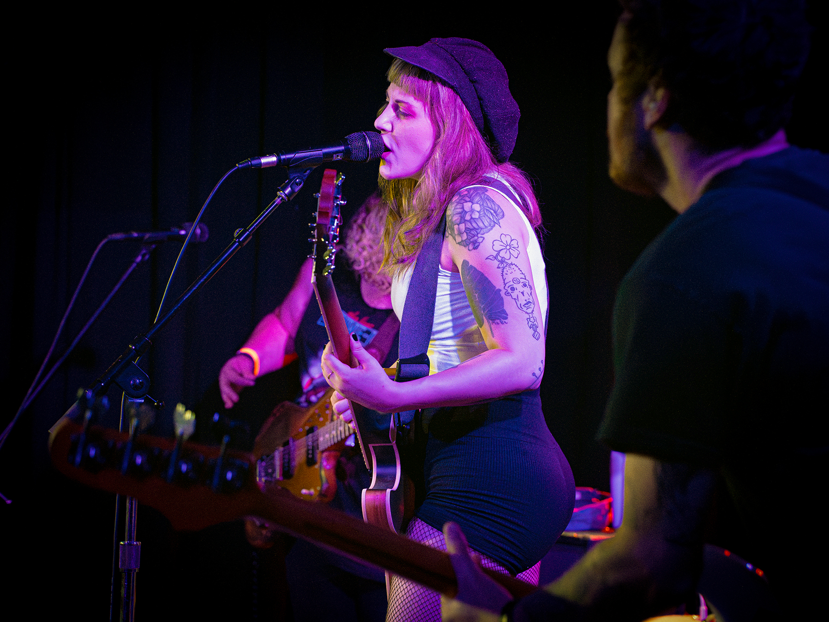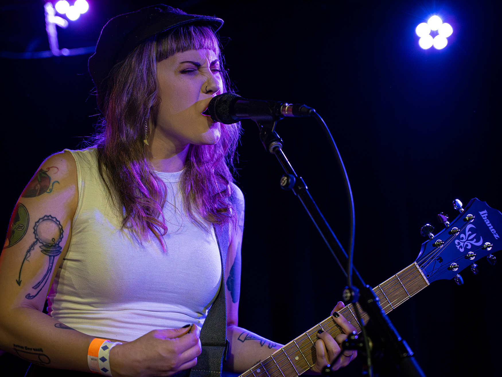 Anita Velveeta played many released tracks including, “finger puppet,” “milk,” and “I saw the devil in Portland, Oregon,” the latter of which featured intense red lighting and vigorous riffs. Anita’s unique and spunky voice fits her music perfectly as each track is special in its own way. There are clear influences from a wide range of genres in this artist’s songs, which made it all the more interesting to listen to.