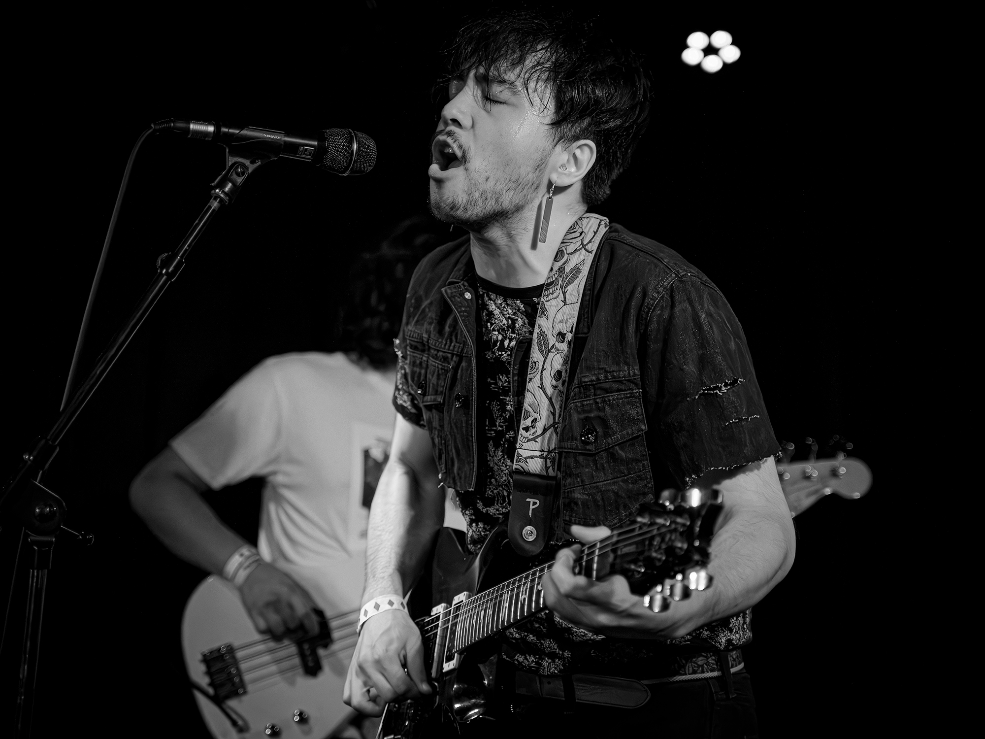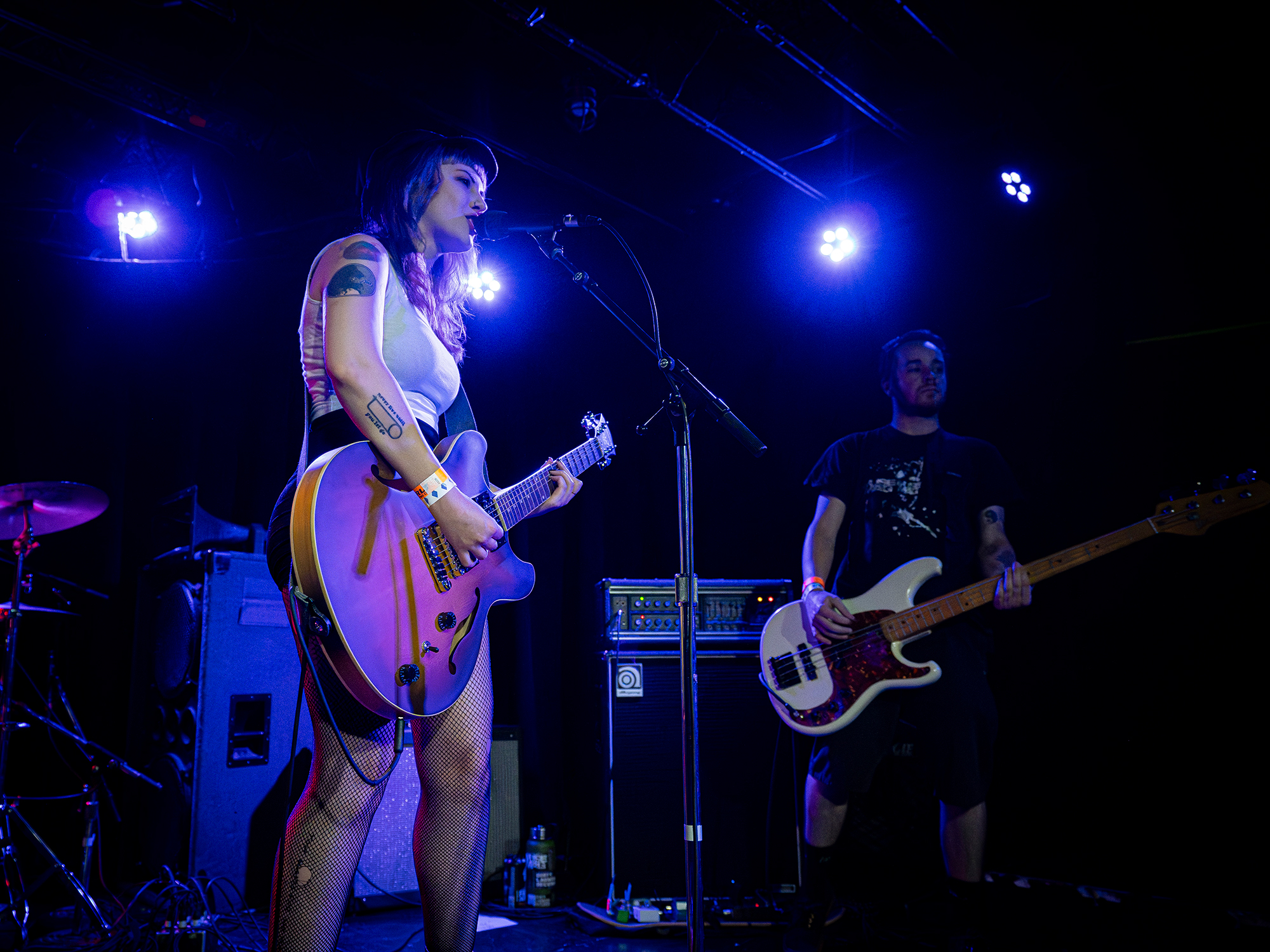 In Lieu started the night on a literal high note and came out of the gate with intense guitar riffs and screaming. The band combines the talent of Nikii Post (guitar/vocals), Mano Holgin (drums), Kyle Adams (guitar), and Skarie (bass.) The self described “grunge-y, scream-y and noisey” sound that the band demonstrated immediately cleared the air and lead singer Post noted, “Y’all awake? Did we wake you?”
