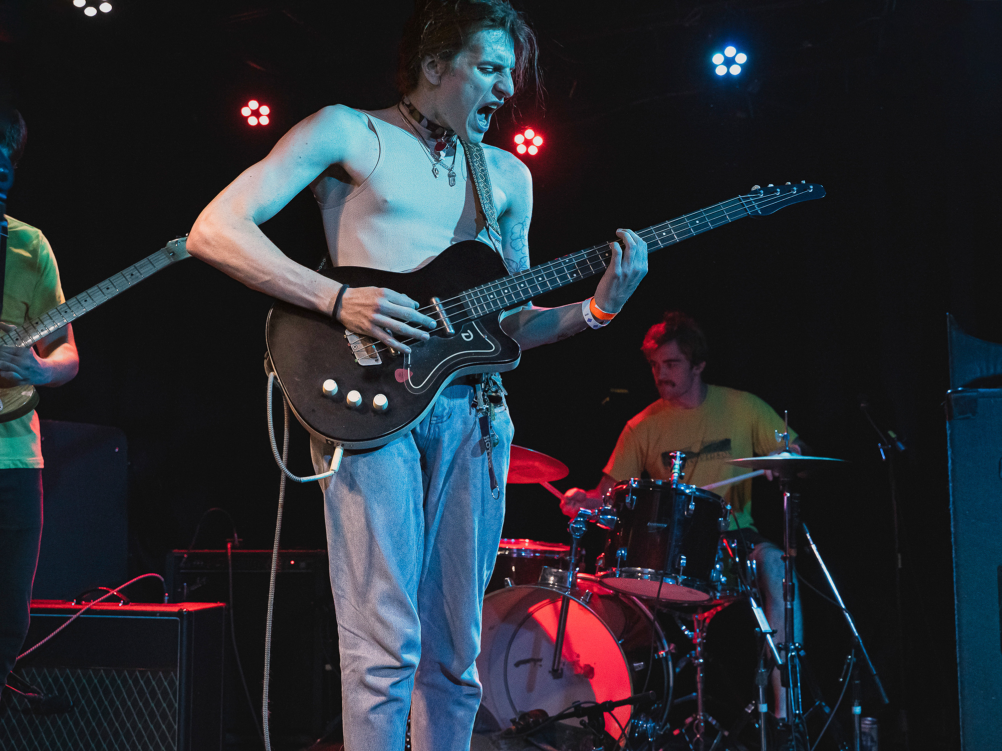 Odd Prospect was passed the energy created by Anita and ran with it. I had never heard of the band before attending this show, but they are now one of my new favorites. The grunge-y rock band started their set with a punchy fast paced beat. The trio consists of lead singer Ariel Lerner, bassist Leo Lerner, and drummer Clark Amann. The band expertly balanced rock pieces with more intense punk sections. Lead singer Lerner, displayed immense vocal stamina while switching between belting and emo screaming. This was particularly heard in the track the band released last Halloween, titled, “skinwalker.”