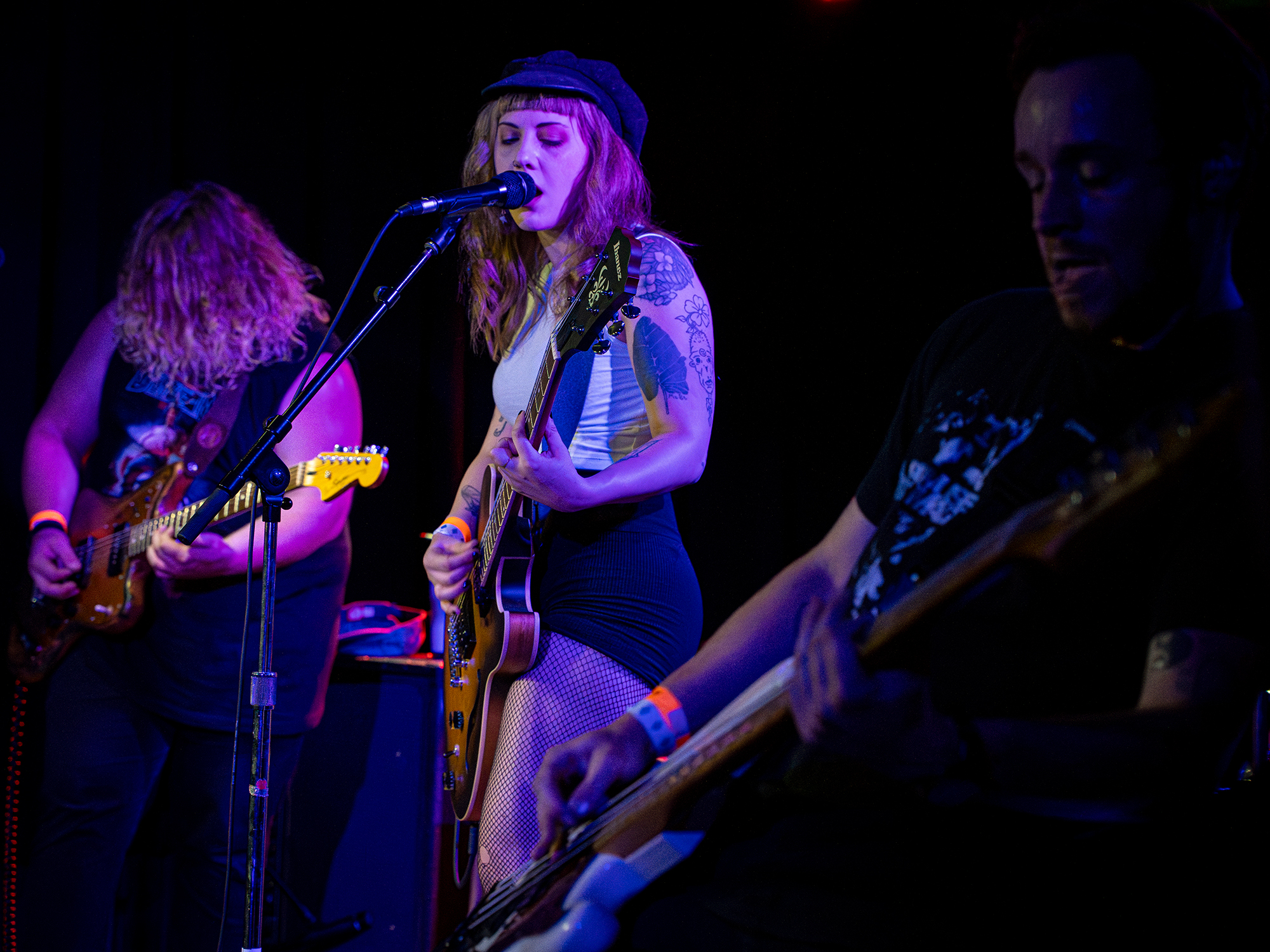 Having seen Anita Velveeta perform many times, I am so excited to finally get to write about her! Anita always brings the most charismatic energy to her sets which really allows the audience to settle into the show and let loose. The singer confidently talked with the audience as if we were long time friends. Many of her songs touch on social issues, like her song “Terfs Will Not Get Into Heaven” which got the crowd riled up and ready to mosh. The artist was supported by John O’ Brien on guitar, Jake Berglove on bass, and Benjamin O’Malley on drums. The band seemed extremely practiced and in sync while shredding away on their respective instruments.