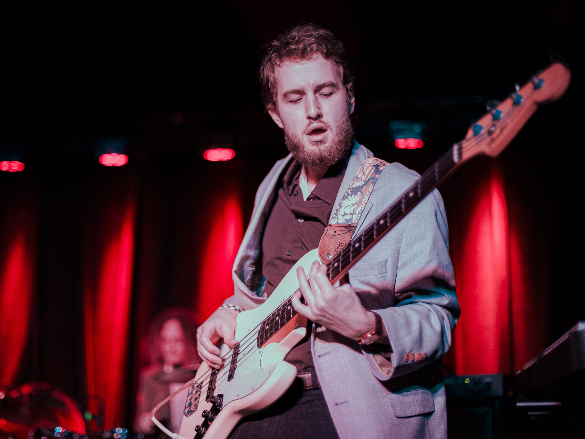 Another highlight of Wonderful Bluffer’s set was hands down Matthews’ seemingly improvised solos on the keytar. The musician was introduced as “the synth wizard” and I certainly could see why. I don’t often see someone play this instrument in real life, so I always get excited when I do as I just think they are fun instruments that add a unique sound to pieces that you don’t hear in much popular music today. The band also played a handful of pieces off of their most recent album release, Torn By Reflection, including “Battle of Blair Mountain,” “Napalm Showers,” and “Miscommunication,” and you can hear the clear blending of classic rock and the blues in each piece.