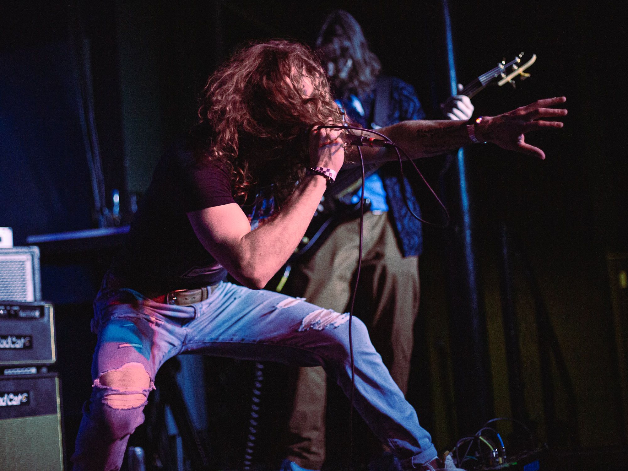 Johnson’s voice is so distinct and truly makes their music stick out from all the rest. At one point in their performance he even strummed his guitar with his tongue! I mean, what is more rock star than that?! In stark contrast to Johnson, guitarist Leahy displayed an aura of calm, cool, and collectedness as he expertly riffed through each piece, all while taking time to occasionally bend down to take a sip of his beer or just stare out into the crowd.