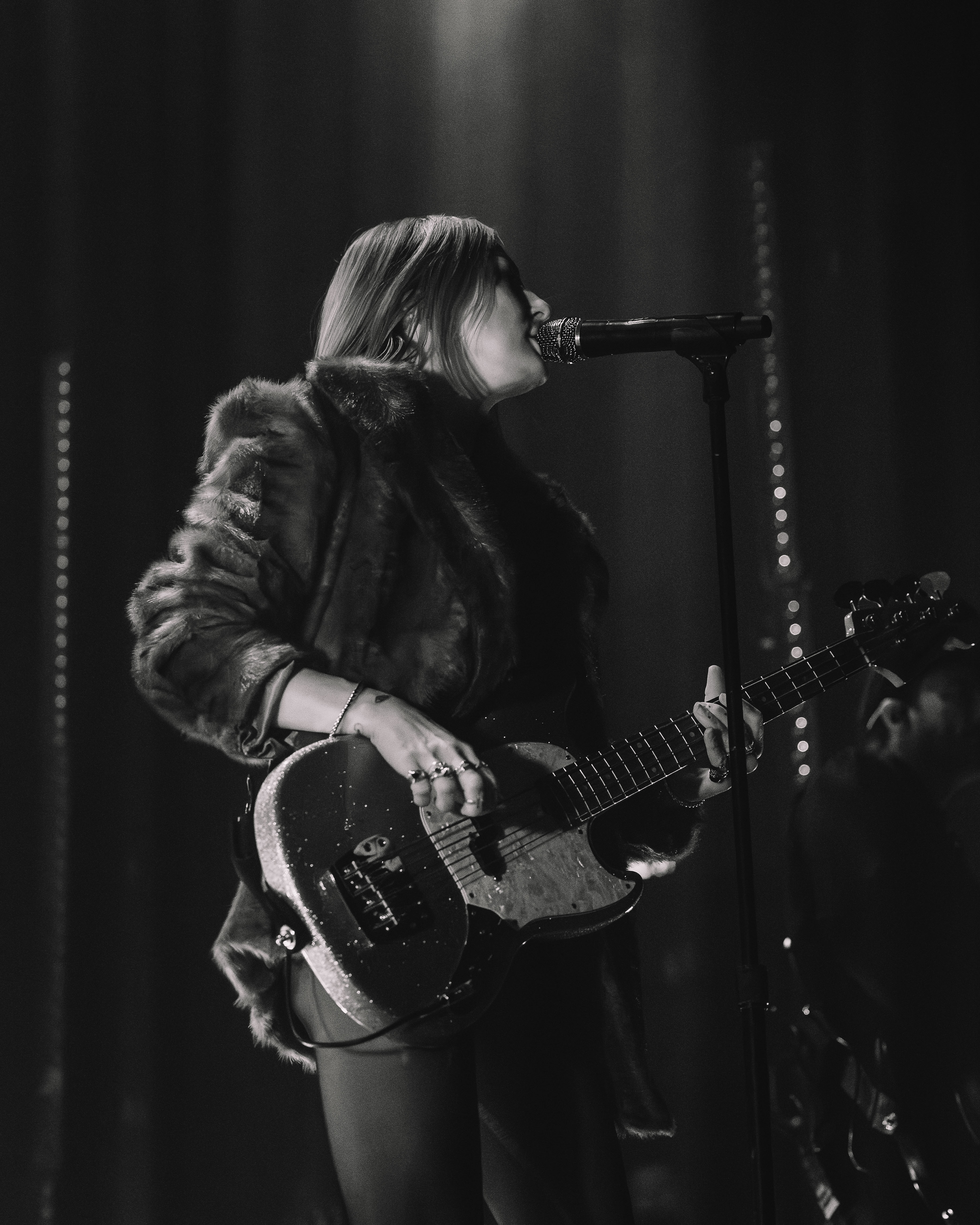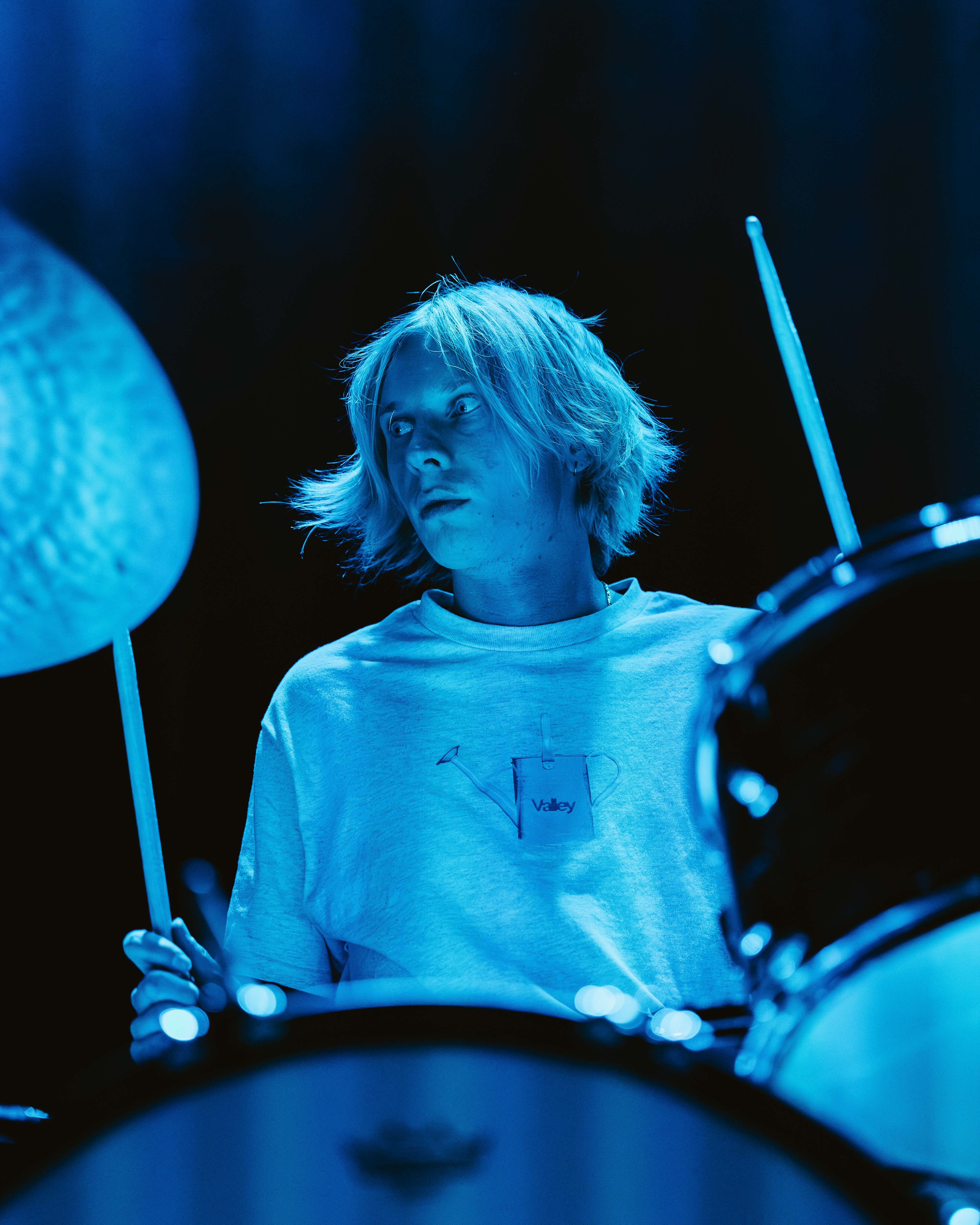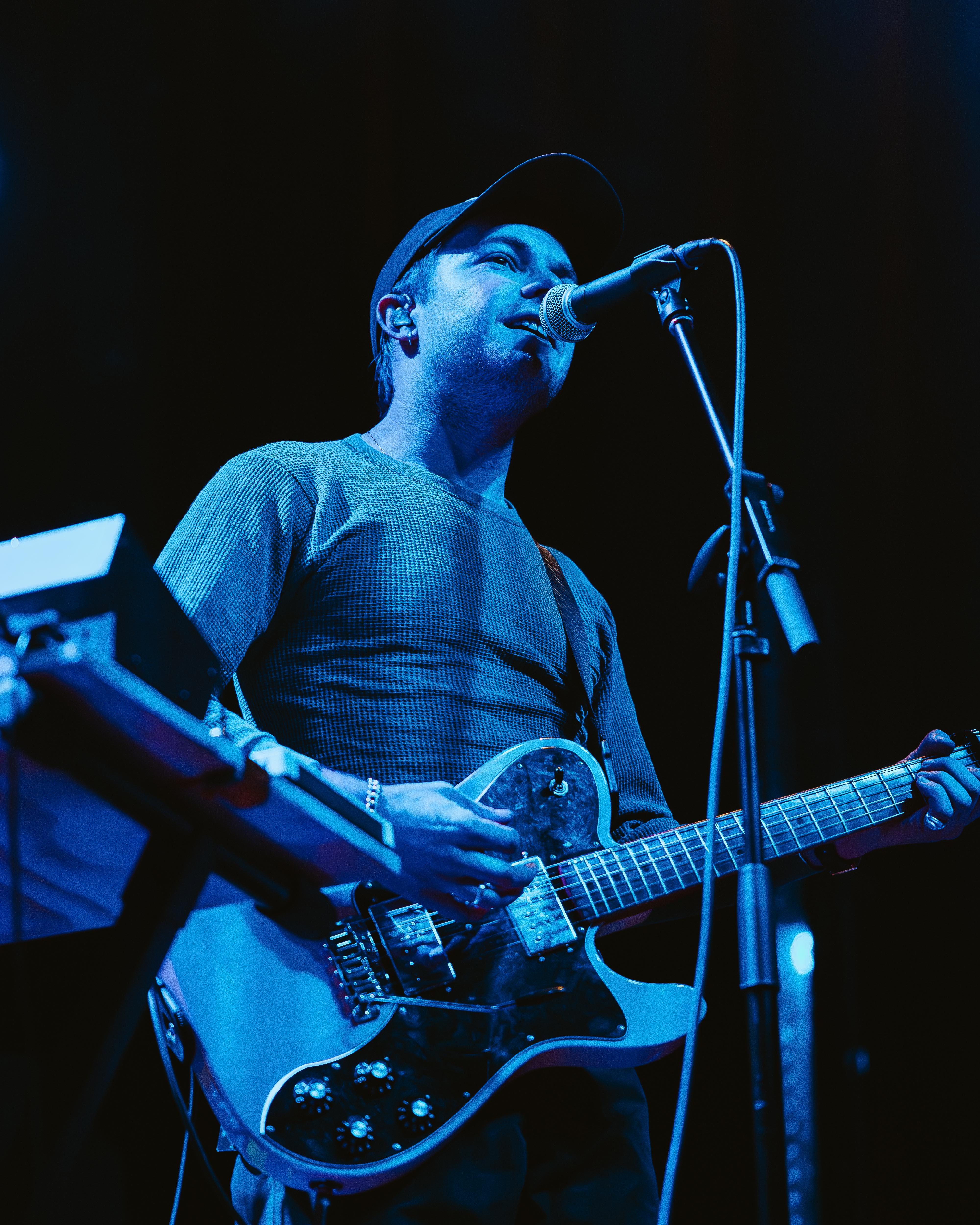 Meija, led by Jamie Sierota, opened the night to a crowd that was already elbow to elbow, diving right into “Kid” from his 2019 EP, So Long Kid, a song about the innocence of youth and the desire to reconnect with their younger self. The stage lights bathed in deep blues and reds, leaving lots of room for shadows to lurk around the edges. Karasev’s strong drum performance paired well with his long blond hair bouncing in rhythm, while to his left, Sierota’s sophisticated guitar riffs matched his long dark sweater and fancy dress pants. Part way through the set Sierota held up a photo board that hosted their name with an animal on it and asked the crowd if they knew what it was. “Possum!” they shouted back, prompting the band to introduce the next song, “POSSUM,” from their most recent 2024 album, There’s Always Something, a track that suggests a desire to retreat and protect oneself from harsh realities. Sierota’s soft articulate voice carried the track, but it couldn’t have been done without a little help from the backing track feature vocals of Mark Oliver Everett from the notorious Los Angeles indie rock band, Eels. They eventually closed the night with their fan-favorite “Buttons,” singing about those small triggers that make you feel exposed or empowered in a relationship. The crowd cheered as Sierota began to play the melody and sang along, ending their set on a high note.